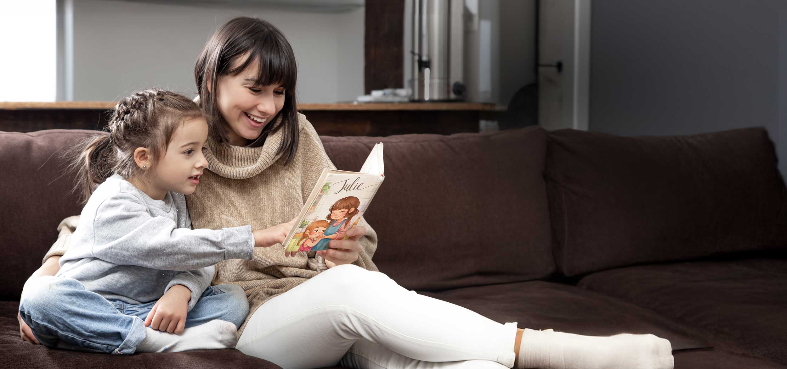 La personnalisation complète vous permet de traiter de tous types de sujets avec votre enfant, même les plus compliqués. Nous trouvons toujours des manières imagées d’y répondre.